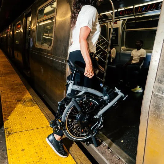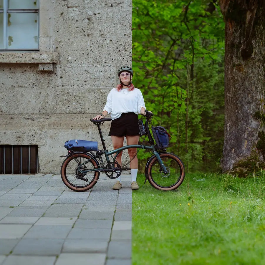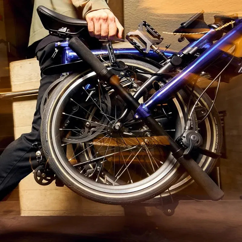 The 16" wheeled Brompton delivers the smallest practical fold—about 23" × 25" × 12"—with the greasy parts tucked neatly inside. It rolls on EZ wheels so you glide it instead of lugging it. And beyond the ride, Brompton offers an unmatched ecosystem of bags, lights, and upgrades, all designed to make daily life on two wheels effortless. Hand-built in London since the 1970s, it’s the folding bike that gets every detail right and the only one that is actually fun to fold and unfold.