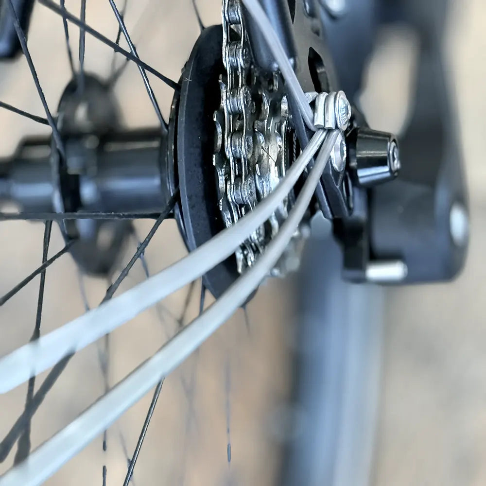 The Brompton 4-speed uses a simple derailleur system to give a useful range of gears for everyday riding, while keeping the bike light and compact.