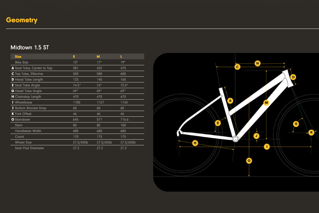 XS (15") 5'0" - 5'2", S (17") 5'1" - 5'4", M (18.5") 5'3" - 5'6"