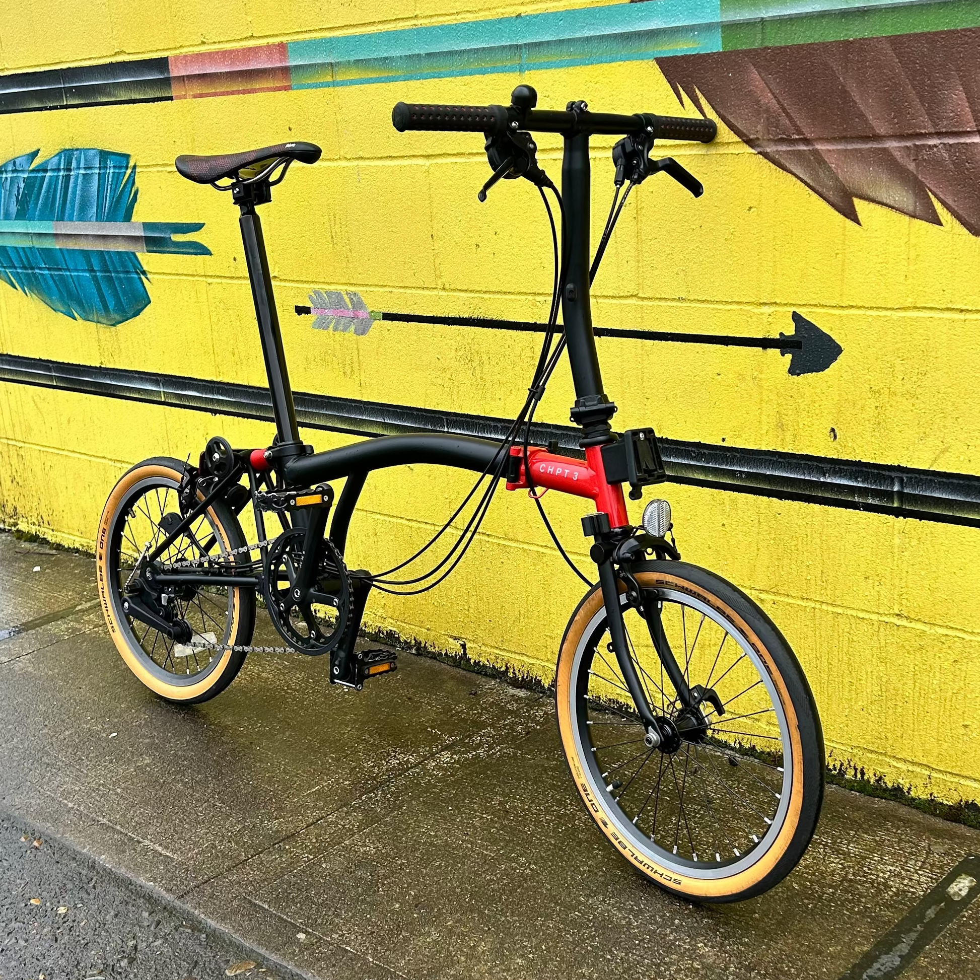 This is not a standard Brompton. The Brompton x CHPT3 V2 is a rare, limited-edition collaboration between Brompton and ex-Tour de France professional David Millar — the man behind performance cycling brand CHPT3 — and it shows in every detail. Born from David's obsession with making a Brompton fast enough for a die-hard roadie to actually want to ride, the V2 was refined over the original with sharper componentry, a race-tuned suspension block, and Schwalbe One 35mm tan-wall tyres engineered exclusively for this edition. It's the kind of bike that stops people in the street — and then rides away from them.