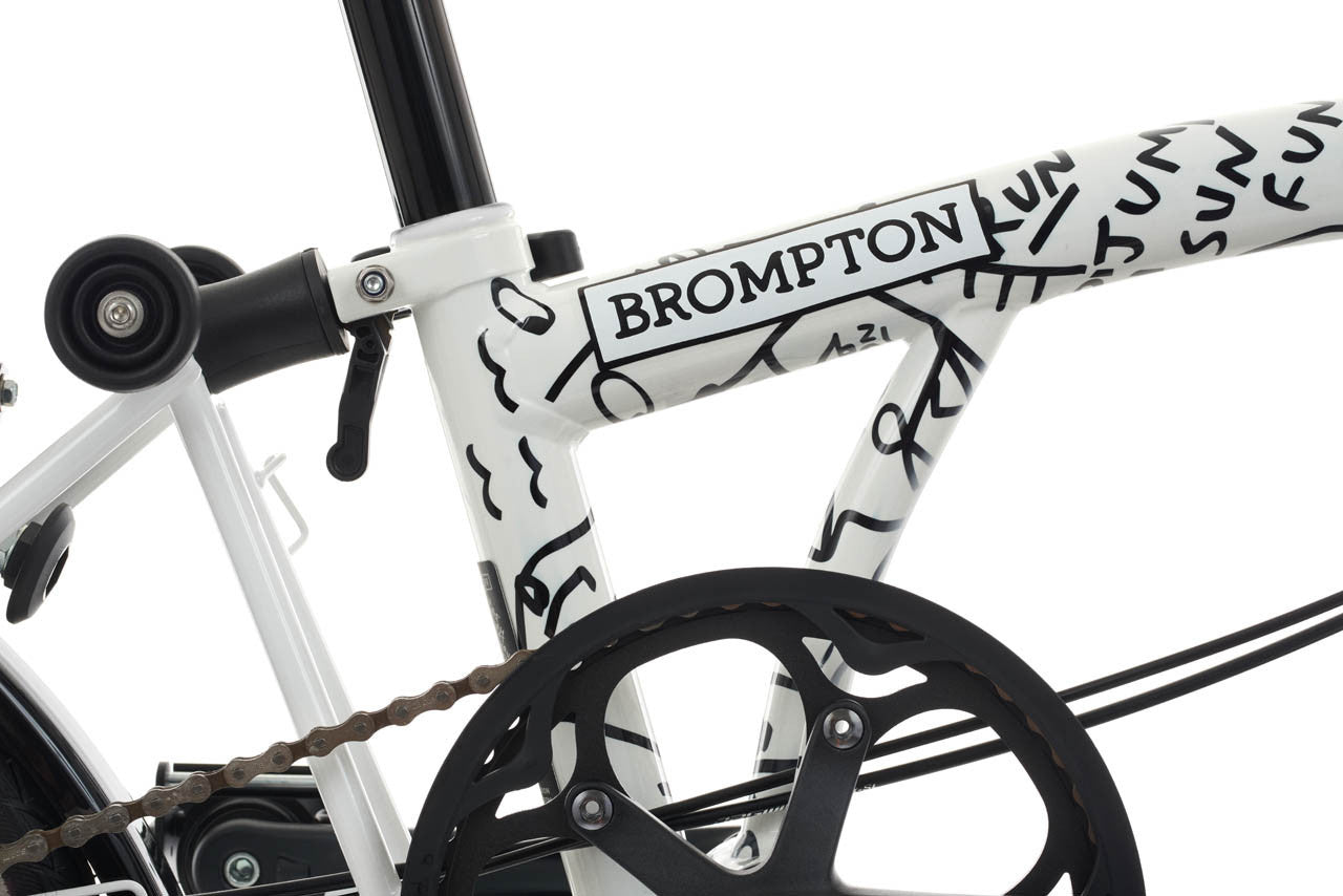 The C Line Urban Shantell Martin – 2 Speed brings the artist's work to life in motion. This special-edition Brompton bike features a striking design inspired by her artwork. Unlike other Bromptons, the bike features a custom-printed Selle Royal saddle and laser-etched serial plate. It also bears a one-of-a-kind iteration of the Brompton logo drawn by Martin. The 2-speed drivetrain offers versatility for urban commuting, taking you anywhere from the studio to the world. Combining Brompton's renowned compact engineering with Martin's bold visual language, the bike is a standout piece in any rider's collection. A statement of style and creativity, surely not to be missed.