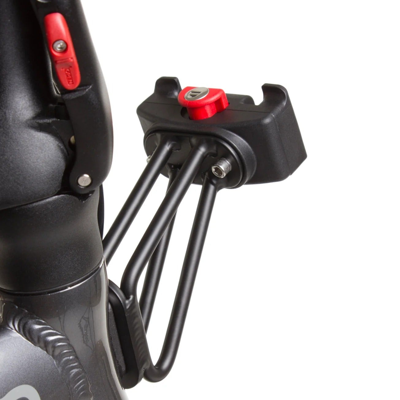 Using a KLICKfix quick-release connector, it lets you snap compatible bags, racks, and baskets on and off with a push of a button. The low-profile mount doesn’t change the folded size of the bike, and an integrated lock helps keep your front cargo securely attached when you step away.