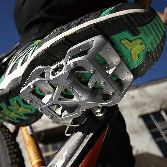 The wide aluminum platform offers a confident grip and natural foot support for all-day comfort, while replaceable stainless-steel traction pins ensure reliable hold in any weather. Built in Japan with MKS’s renowned precision, the Allways Ezy Superior Pedals combine premium materials, smooth bearings, and timeless design in a durable, easy-to-use package.