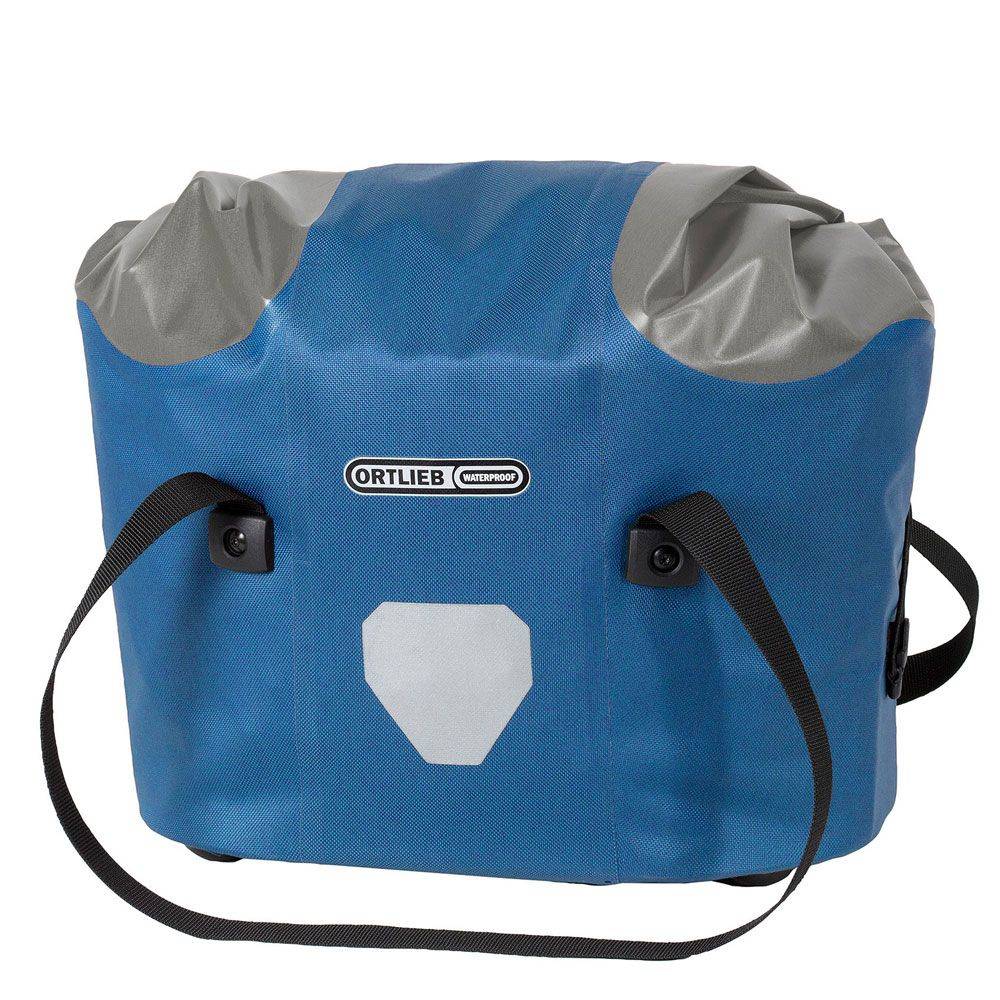 ORTLIEB has reinvented the handlebar basket: stylish, practical, secure and waterproof. That makes it far superior to baskets made of wicker, wire and porous materials. The practical drawstring flap allows you to open it in a flash and close it reliably even when it’s filled to the brim (maximum: 5 kg). Wallets, keys and smartphones stay safe, secure and easily accessible in the inside pocket. And when it comes to off-bike loading and unloading, you can rest assure that it’ll always stay on its feet. Like the proven ORTLIEB Ultimate bags, the basket attaches to your handlebar with the included mount and is also compatible with Rixen&Kaul mounting units.