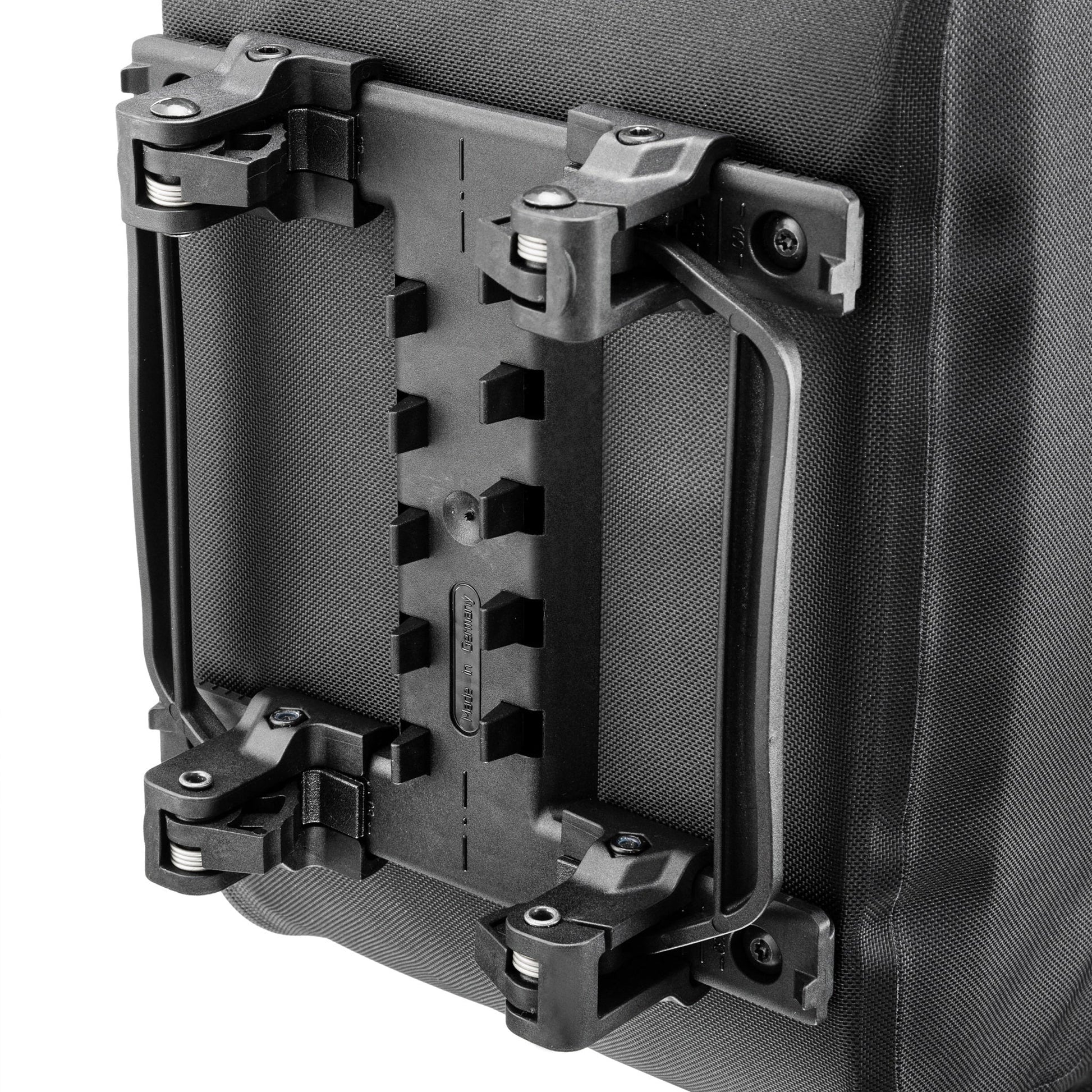 Manufactured in Heilsbronn, Germany, the Trunk-Bag RC is waterproof to IP64 standards, completely dustproof and splash-resistant from all directions. PU-coated ripstop nylon fabric sheds water instantly and dries fast after heavy rain, keeping contents protected in all conditions. The bag maintains its rigid box shape thanks to stiff plastic inserts, providing consistent structure whether empty or loaded to its 10 kg capacity. A removable shoulder strap and Top-Lock quick-release system mean the bag detaches in seconds for easy carrying.