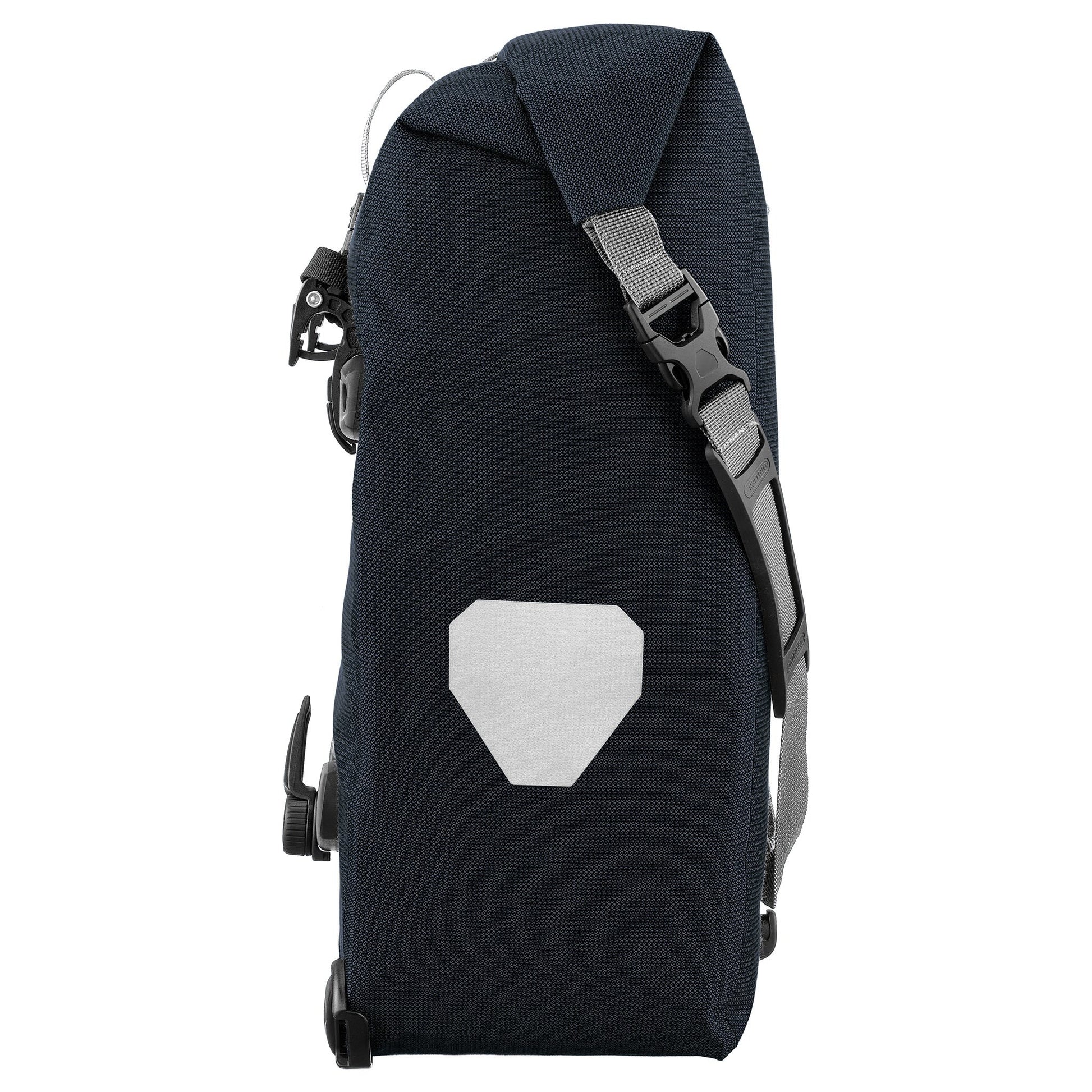 The Ortlieb Back-Roller Urban is an ideal single bag for bike riders looking for a spacious, waterproof bike bag to accompany them on the way to work or school. Made of a special blend of Cordura fabrics, the bag has a textile appearance that is a perfect match for both casual and business attire. Thanks to a polyurethane coating on the inside, it is nonetheless absolutely waterproof to IP64 standards, protecting contents from dust, rain, and splashing water from all directions.