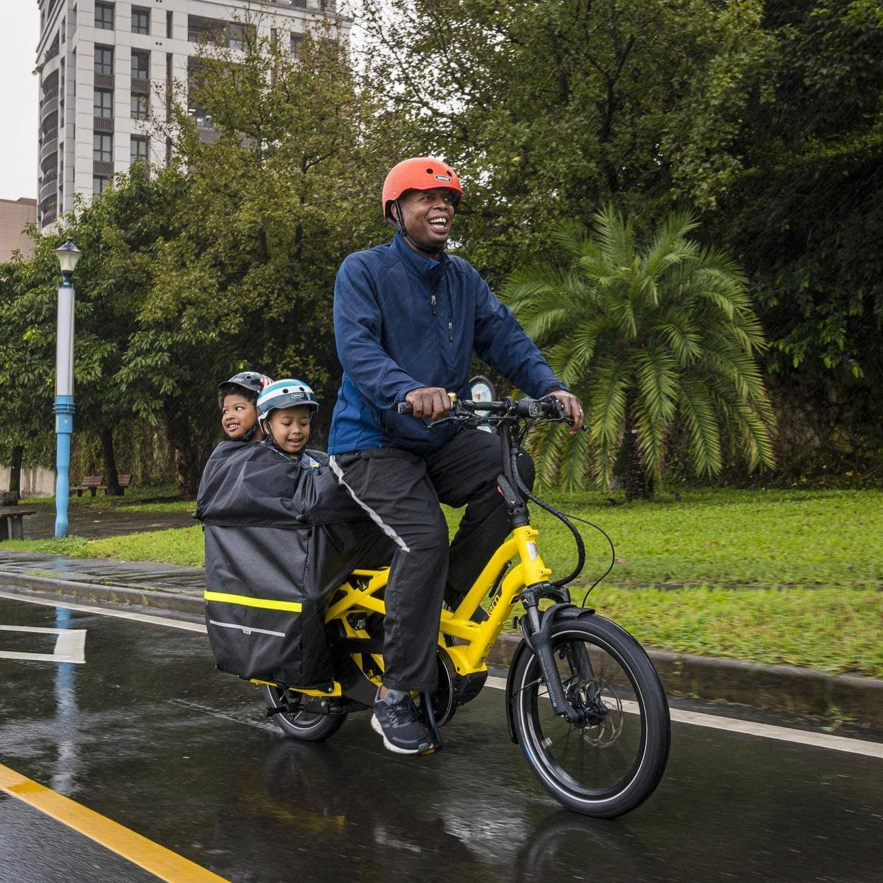 Two purpose-built lids let you switch between cargo and kid duty in seconds: the lockable Cargo Lid shields your stuff from rain and curious hands, while the Kid Lid cinches around little passengers to keep warmth in and wind out. Add the Storm Shield on top for full “mini cabin” protection in truly bad weather.