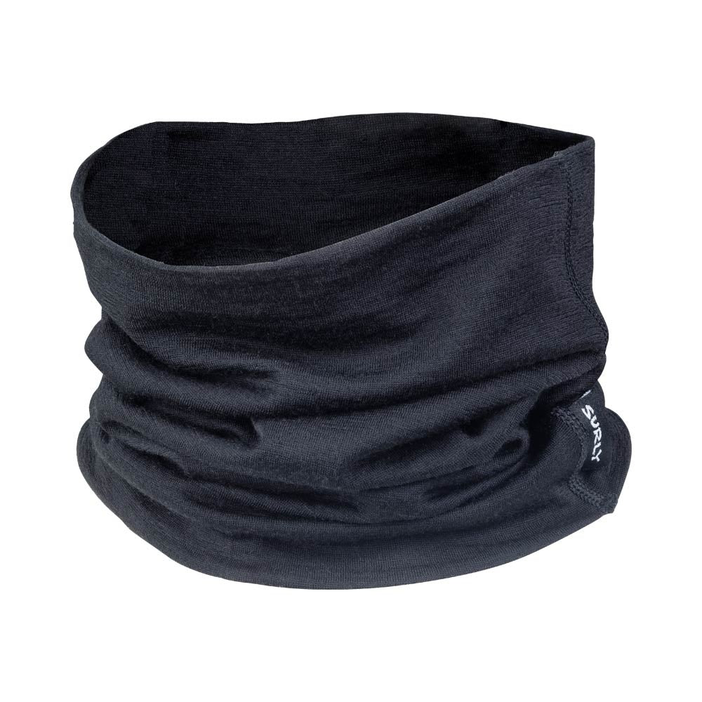 Hi, I’m the Surly Lightweight Neck Toob. You might remember me from such films as “It’s Cold! Don’t Forget Your Neck Toob!” and “Look At This Thing, It Came From a Sheep!” Right now you might be thinking, “But Surly, I already have a Neck Gaiter from you guys. Do I really need a Neck Toob?” And the answer is maybe. Unlike the existing Neck Gaiter, which is made of a light inner layer and a midweight outer layer, I’m made of two lightweight layers. For those days when it’s too chilly to leave your face and neck exposed but not cold enough for the full-blown Gaiter, I try to provide a nice, moisture-wicking alternative. I’m sized to fit most necks, and I can be worn a bunch of different ways.