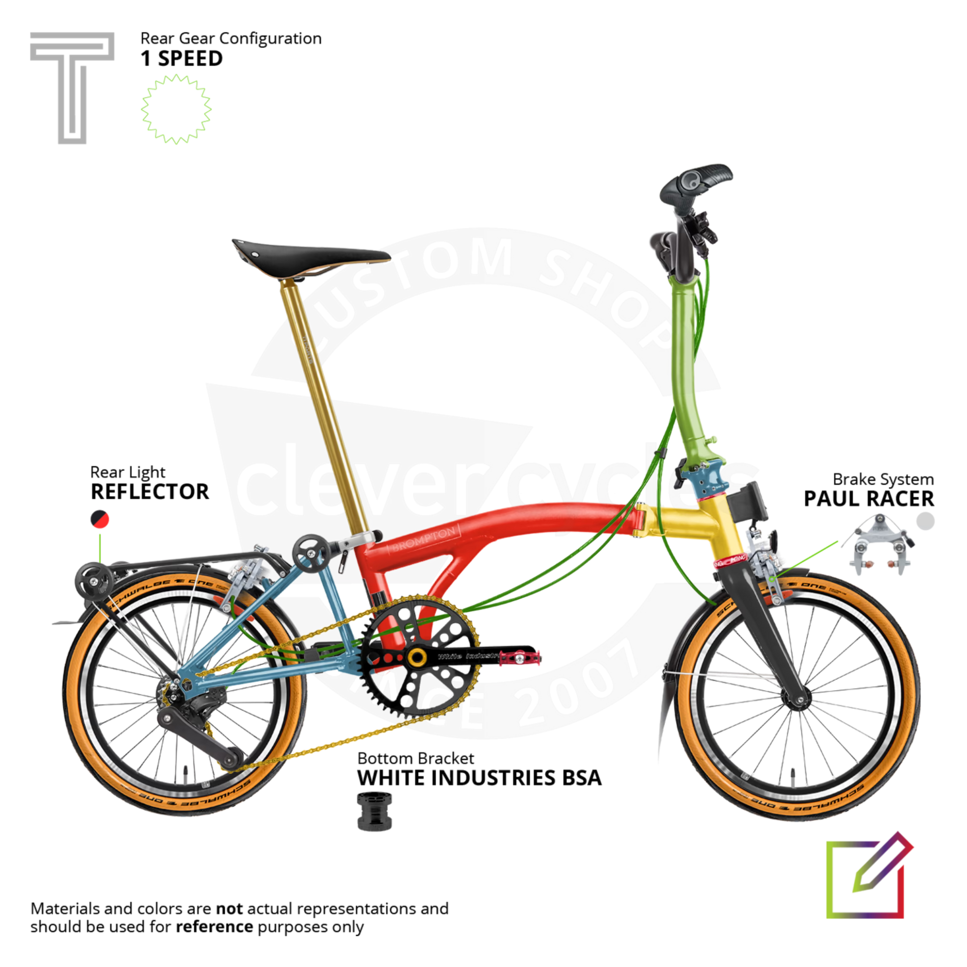And of course, because it’s a Clever Cycles Brompton Custom Shop build, everything can be customized — colors, components, accents — in case you want yours to lean more “helpful guide” or more “please for the love of all things holy, just Google it.”