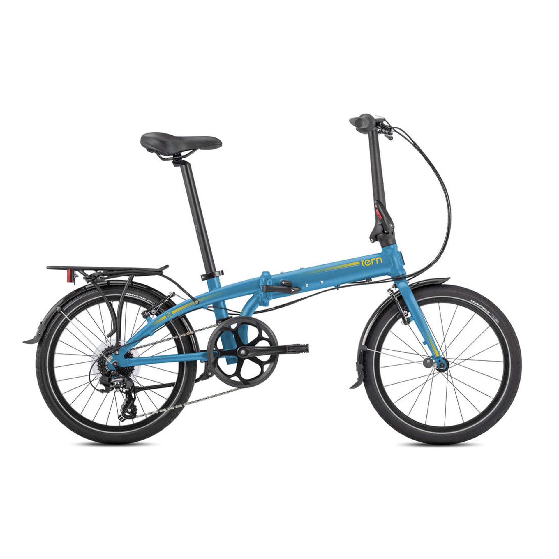 A stiff 3D-forged handlepost and Tern’s advanced frame joints keep the bike feeling solid on the road, then fold down in about 10 seconds into a small package that fits under a desk, in a closet, or in a car trunk. A rear rack and full fenders come standard, so you’re set up for real-world commuting straight out of the box.