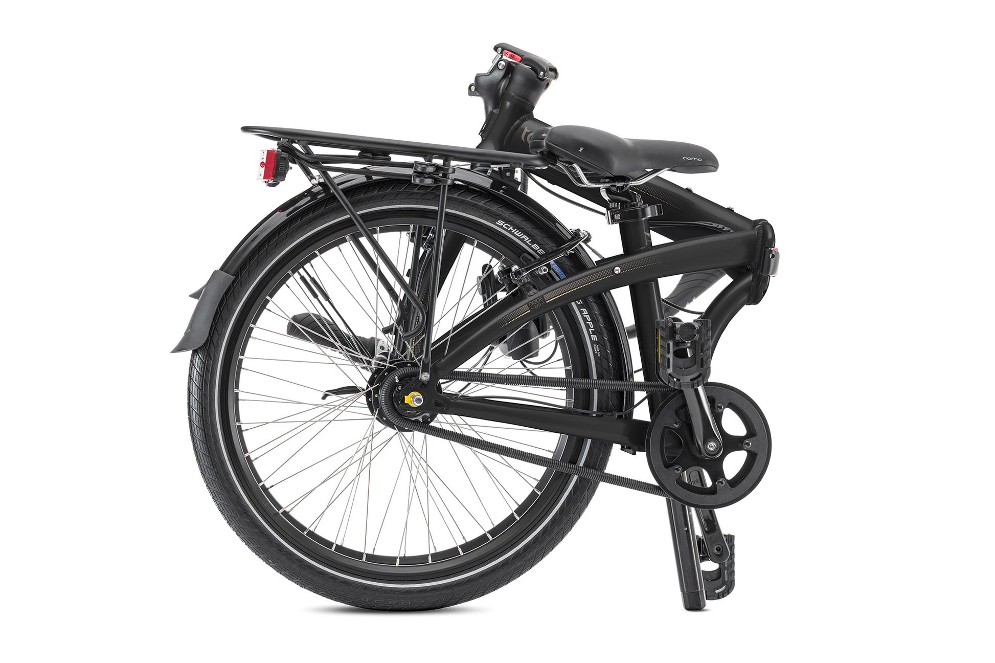 Thanks to the Andros handlebar stem, you can effortlessly adjust your riding position without needing tools. The Schwalbe Big Apple tires come with Kevlar puncture protection, ensuring durability. In just 10 seconds, the Node D7i folds for easy storage and transport, complemented by an integrated lighting system powered by an electricity-generating hub, keeping you visible and secure during your rides.
