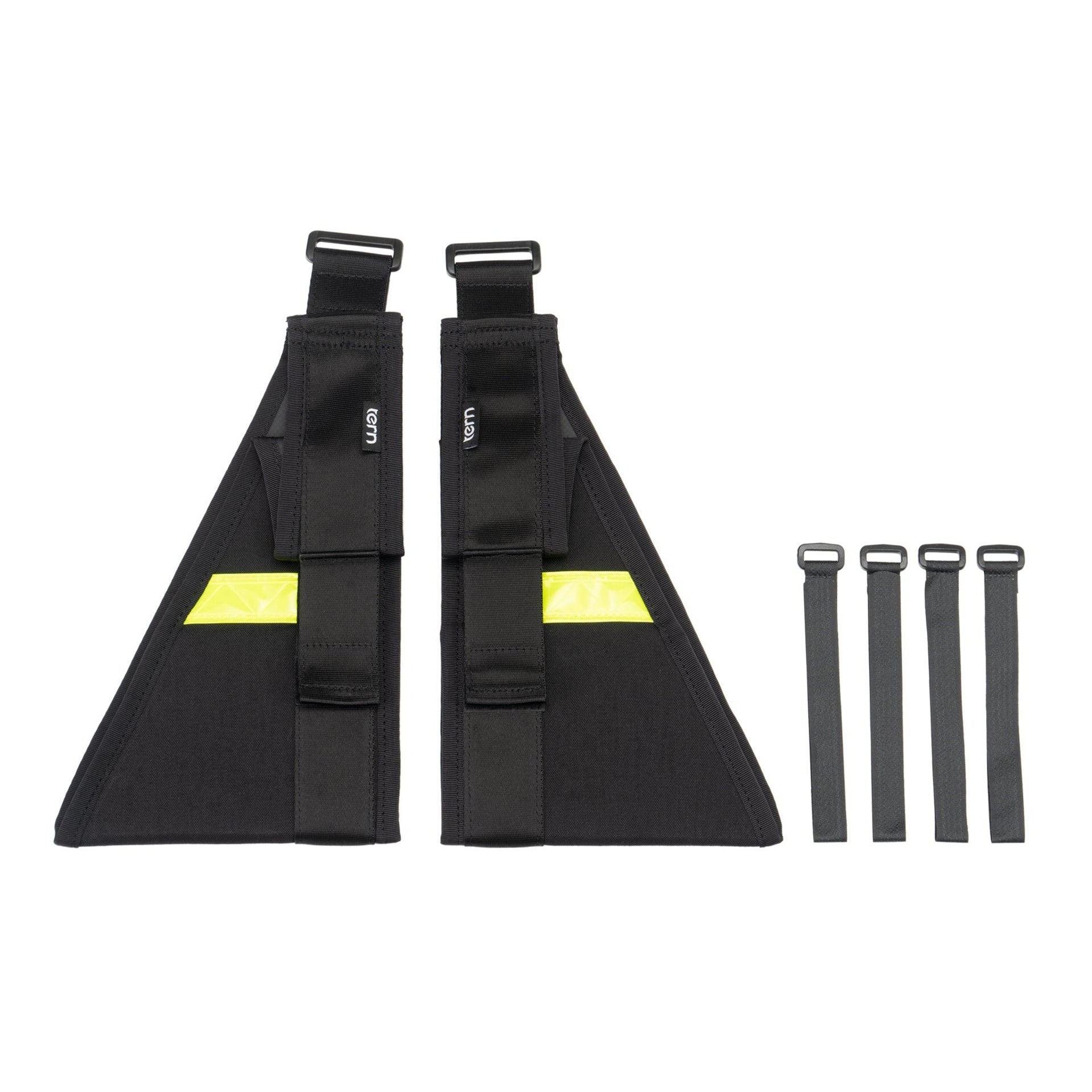 The Tern Sidekick Stirrups give older kids a secure, natural-feeling place to put their feet when they have outgrown a rear child seat. The flexible “stirrup” cups hug their shoes on three sides, helping keep legs tucked safely against the bike instead of drifting toward the wheel.