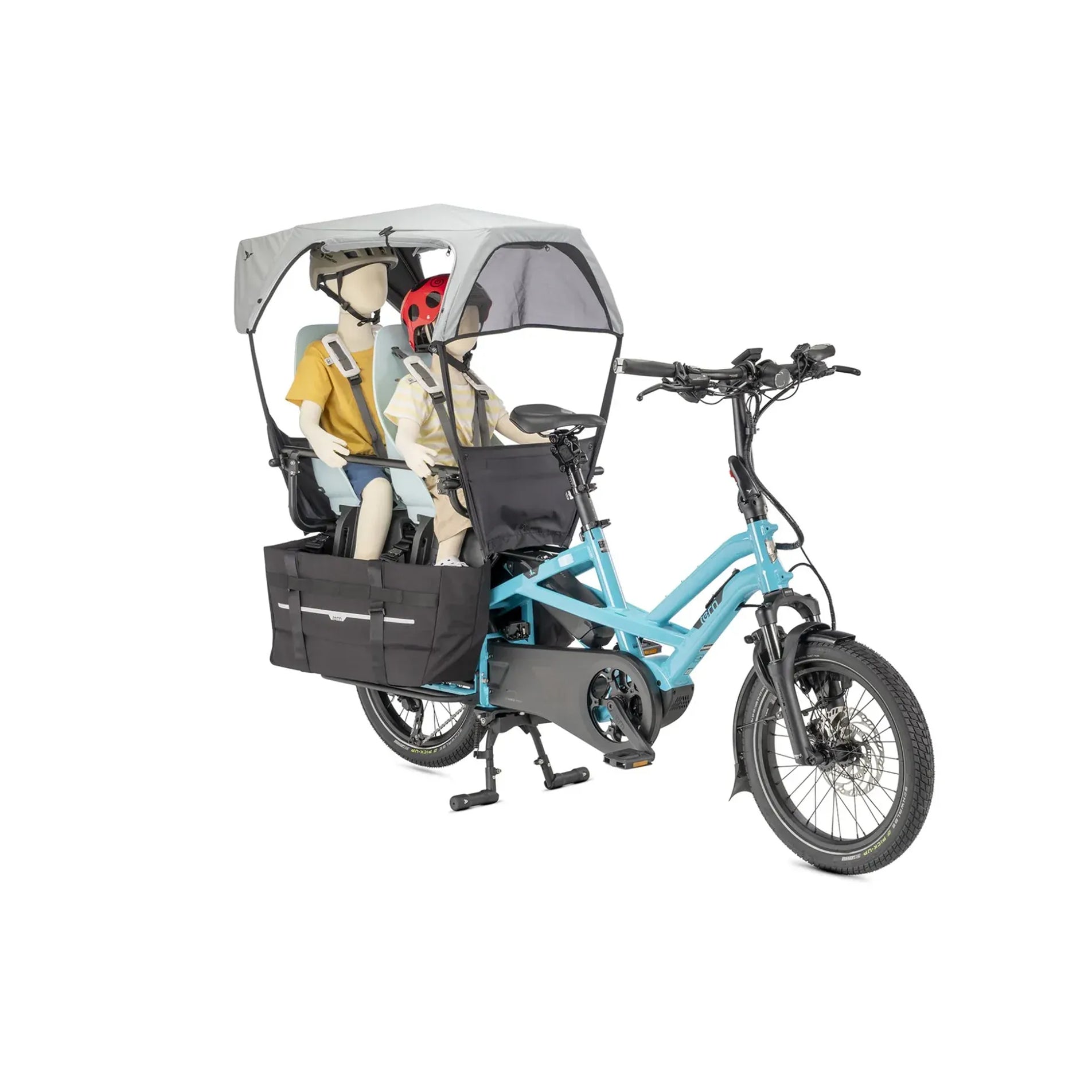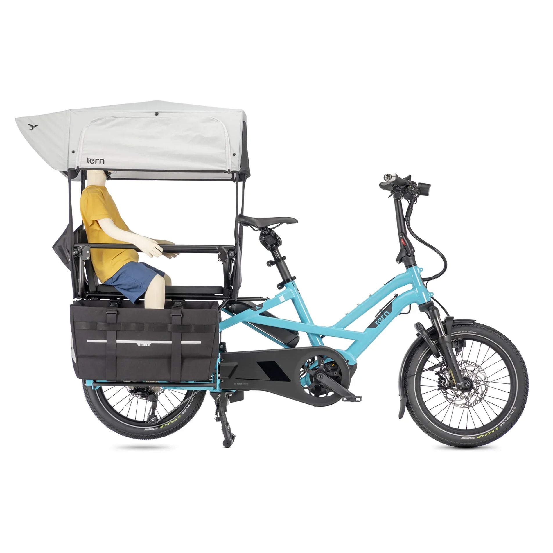 The Tern Sun Shield creates a cool, shaded space for kids riding on the back of your GSD or Quick Haul Long. Mounted over the Clubhouse rails, it blocks harsh sun while still letting plenty of fresh air flow through, so small riders stay more comfortable on bright, hot days.