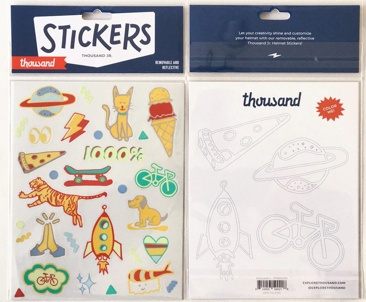 Use them to decorate Thousand Jr helmets, balance bikes, scooters, or any smooth, clean surface. It is a simple way to help kids feel more connected to their gear and more excited about putting on a helmet before every ride.