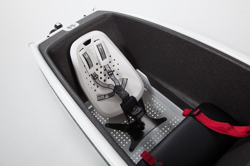 The Yepp Mini Adapter allows you to attach most child seats to the bottom of your Urban Arrow Family cargo bike box so your child can ride comfortably and is well-protected. Installation is easy.